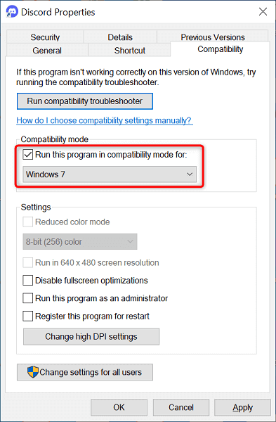 6. Run Discord in Compatibility Mode