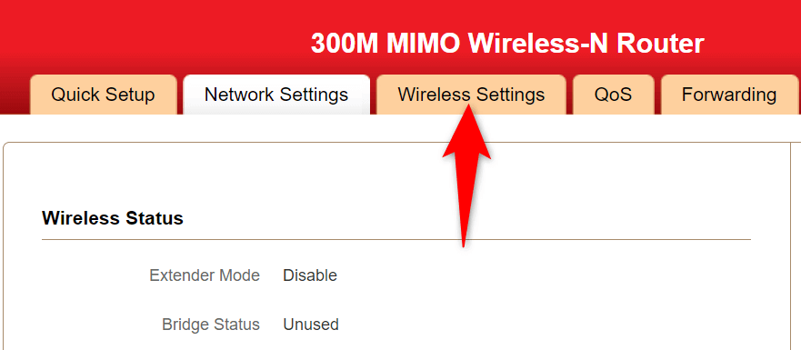 - Select Wireless Settings at the top. If you don’t see this option, it might be called something different on your router, but it should be something similar. Also, look for the option in the left or right sidebar if you don’t find it at the top.