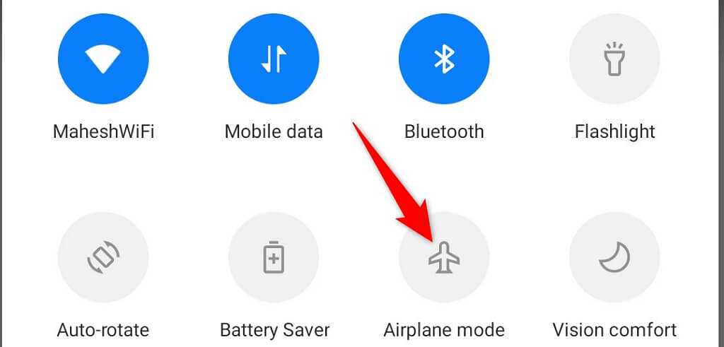 You can enable airplane mode by pulling down from the top of your phone’s screen and selecting Airplane mode. Then, wait for five seconds and turn the mode back off by tapping the Airplane mode tile.