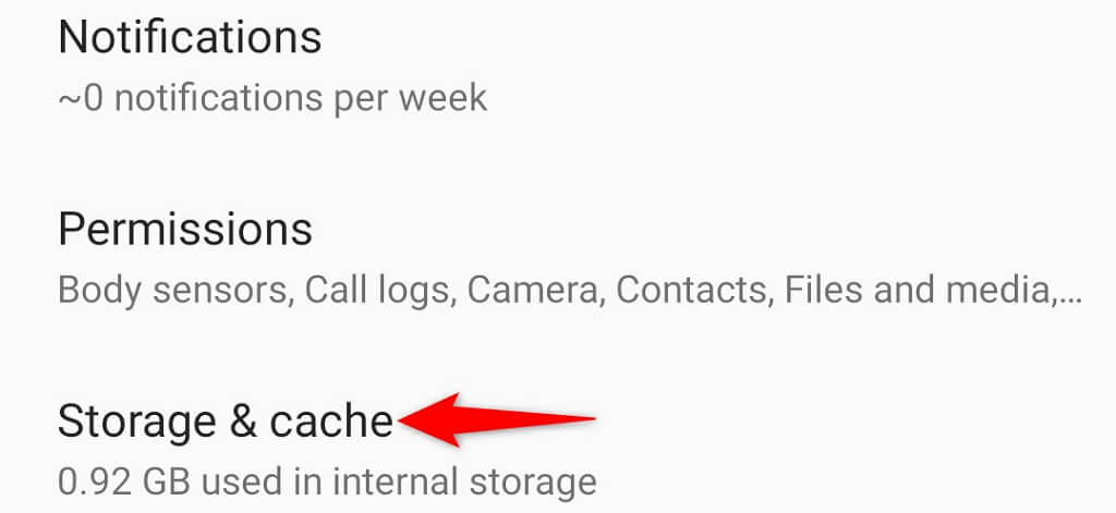 - Select the Storage & cache option.