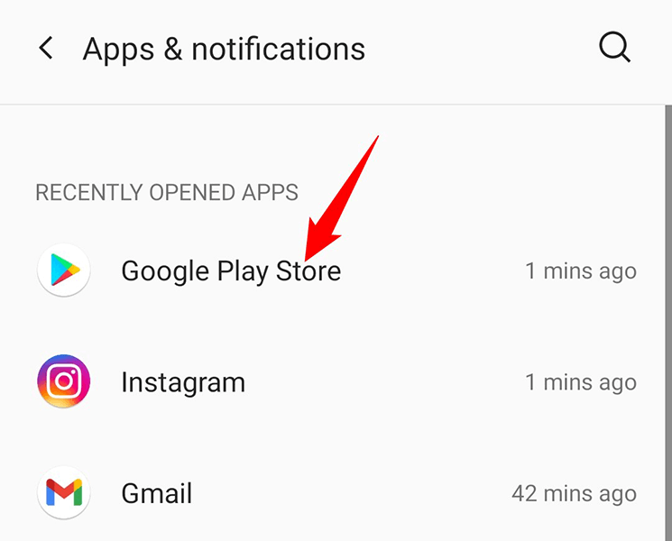 - Head to Apps & notifications > Google Play Store.