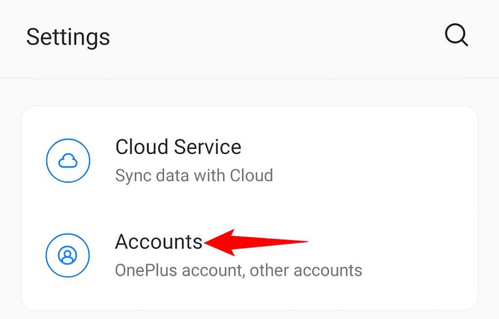 - Tap Accounts in Settings.