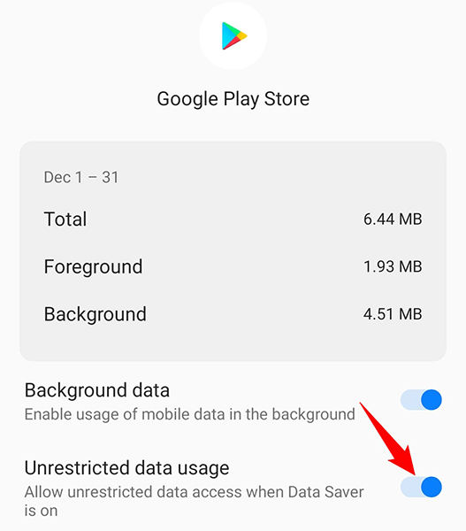 To overcome that, allow Play Store to use unrestricted data even when your phone is in data saver mode, as follows: