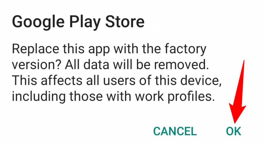 - Select **OK** in the prompt to confirm your choice. * Relaunch **Play Store** and see if you can now download your favorite apps and games.