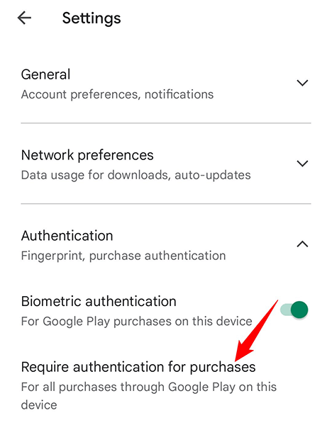 If you’ve enabled the option that requires authentication for Play Store purchases, it might be worth turning off that option to get rid of the “Authentication is required” error. This way, the next time you download something from the Store, you won’t have to authenticate yourself.