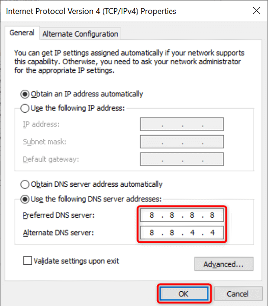 In this case, you can switch to an alternate DNS server and see if that makes any difference. It’s recommended to use Google’s free Public DNS.