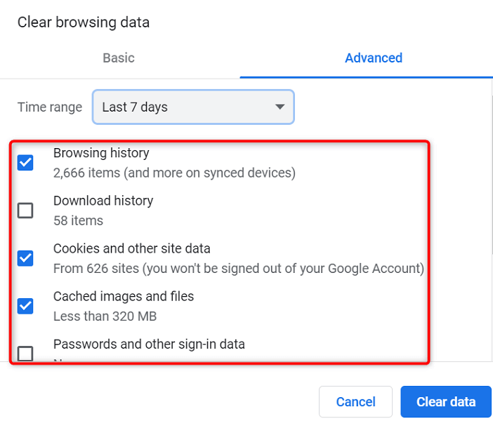 - Choose the items you’d like to clear. Select a few days’ data to be cleared first, and if that resolves the issue, you won’t have to remove your entire history.