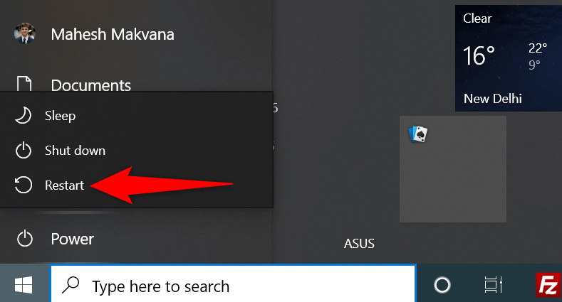 Restart Your Windows 10 Computer