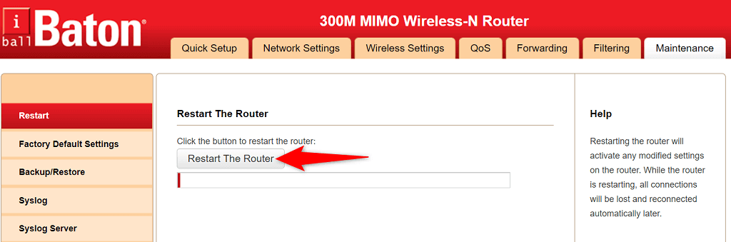 Another way you can reboot certain routers is by opening your router’s settings page in your browser, selecting the Maintenance tab, and choosing the Restart The Router option.