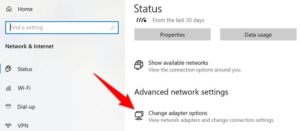 - Launch Settings on your PC and select Network & Internet > Change adapter options.