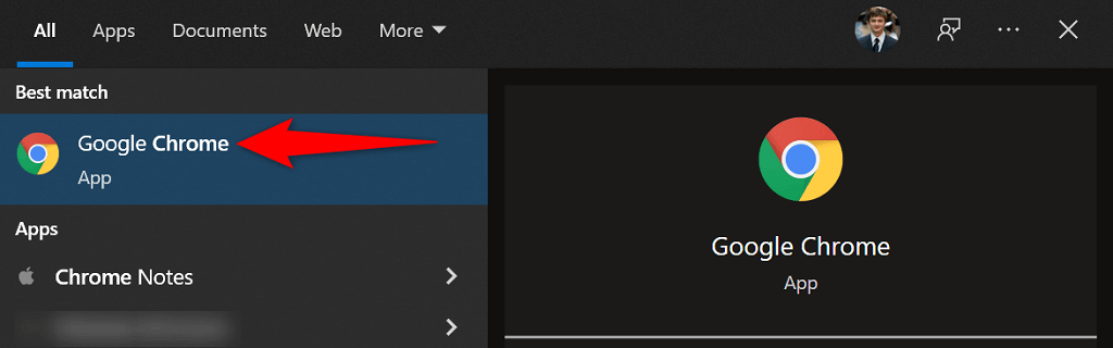 Once Chrome is closed, relaunch the browser by opening the Start menu, searching for Chrome, and selecting Google Chrome from the search results.