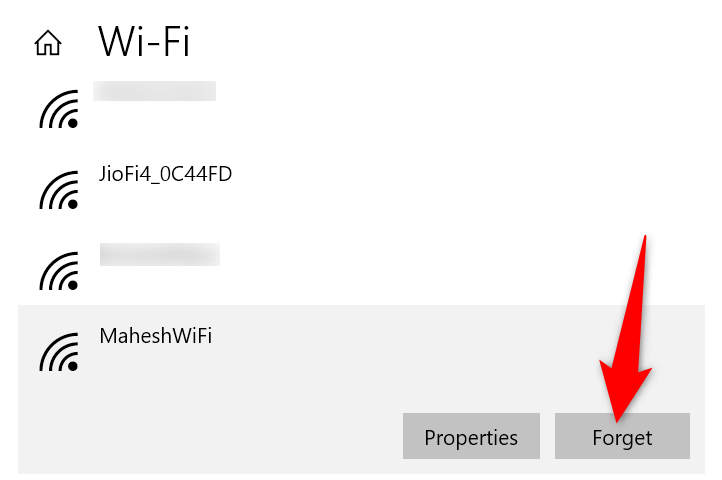 - Select an unwanted network on the list and choose Forget. Repeat this step for each network you want to remove.