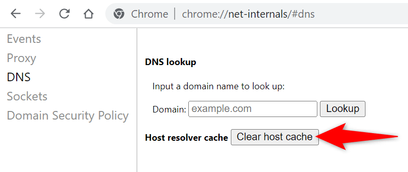- Access the following page in Chrome: chrome://net-internals/#dns