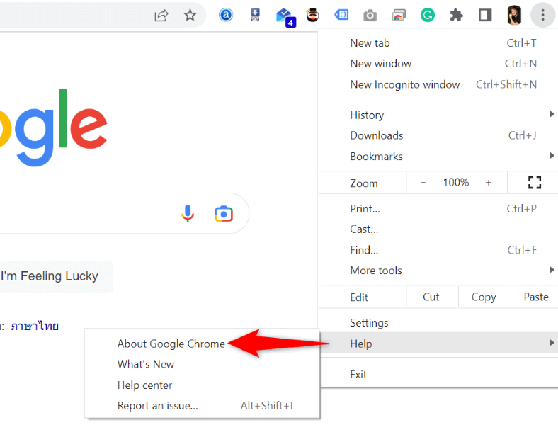 - Select the three dots in Chrome’s top-right corner and choose Help > About Google Chrome.