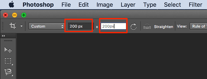 - Access the crop tool in Photoshop and remove any values from the given boxes.