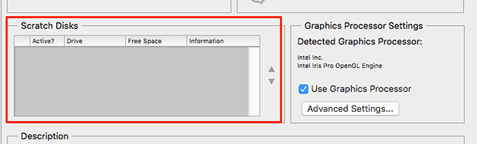 - Enable and disable scratch disks in the **Scratch Disks** section.