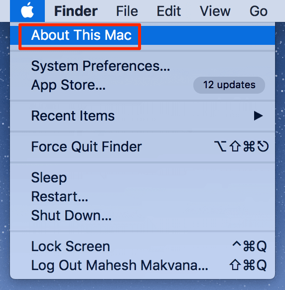 - Click the Apple logo at the top-left corner and choose **About This Mac**.