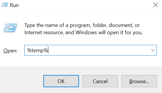 - Press the Windows + R keys at the same time to open Run, type the following into it, and press Enter. %temp%