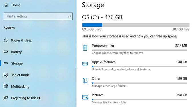 - It’ll show what content is using what amount of space as well as offer recommendations to free-up memory.
