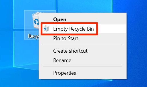 - Right-click the **Recycle Bin** on your desktop and select **Empty Recycle Bin**.
