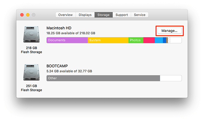 - You’ll see your hard drive partitions listed on the following screen. Select the one that you use as your scratch disk and click the **Optimize** button.