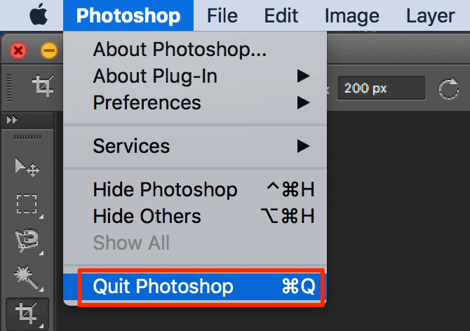 - On Mac, open **Photoshop** and press and hold down the **Command** and **Option** keys simultaneously.