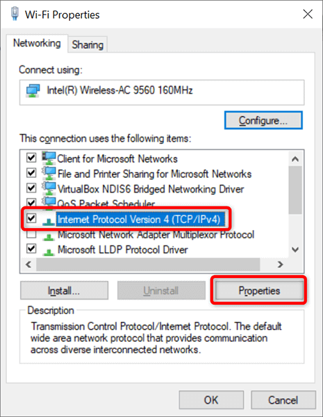 - Select the **Internet Protocol Version 4** option and choose **Properties**.