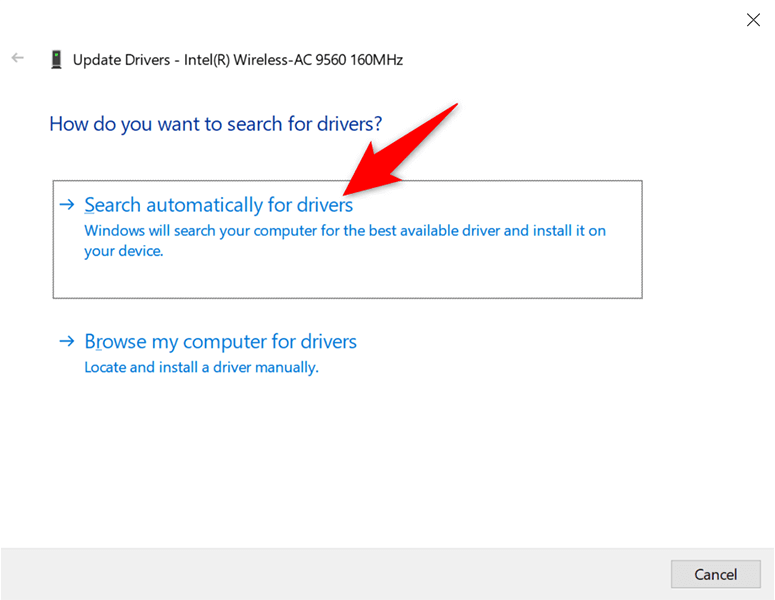 - Select **Search automatically for drivers,** so your PC automatically finds and installs the latest drivers.