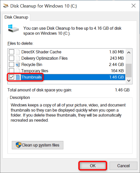 - Turn on the Thumbnails option in the Files to delete section. This deletes all your thumbs.db files.