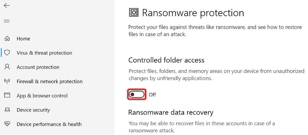 Your PC’s Windows Security app offers a feature that prevents unfriendly apps from making changes to your files. While your rename, move, and delete actions in File Explorer aren’t unfriendly, it’s worth toggling off this feature to see if that fixes your issue.