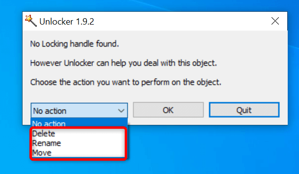 One reason you get the “The action cannot be completed because the file is open” error is that an app has locked your file. In this case, you can use a free app called Unlocker to remove all restrictions on your file.