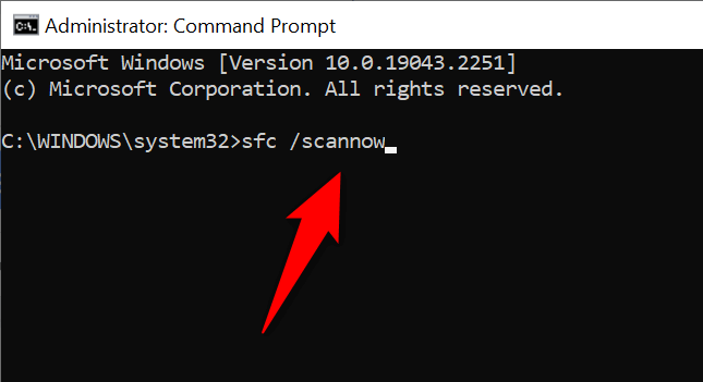 - After executing the above command, run the following command: sfc /scannow