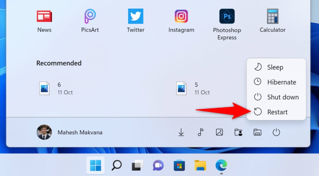 Restart Windows 11
