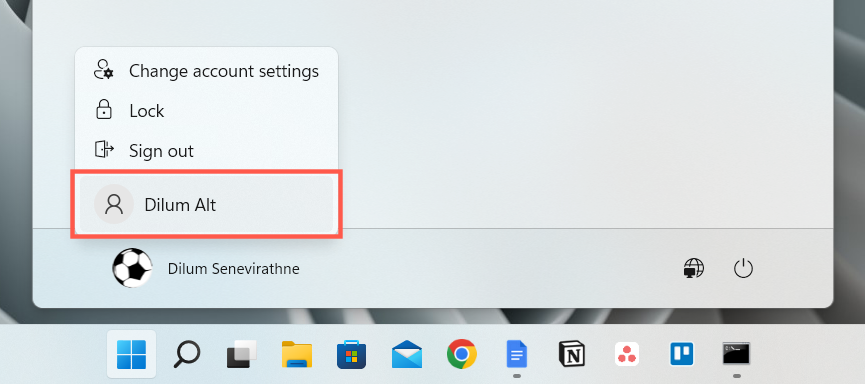 - Open the Start menu, select your Windows profile portrait, and sign into the account you just created.