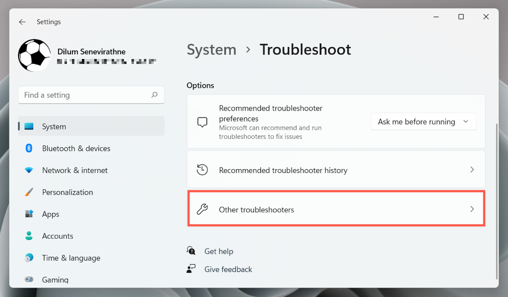 - Select Other/Additional troubleshooters.