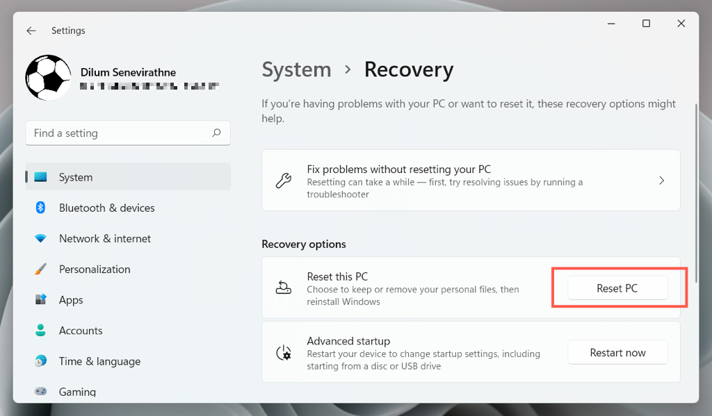 If none of the fixes above help, you must reset the Windows 10 or 11 installation to factory defaults. Back up your PC, and then: