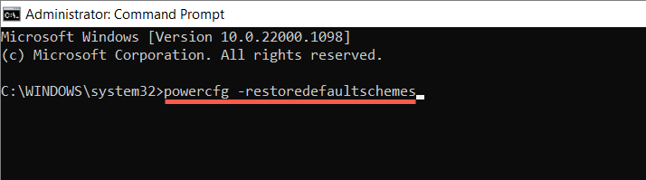 powercfg –restoredefaultschemes