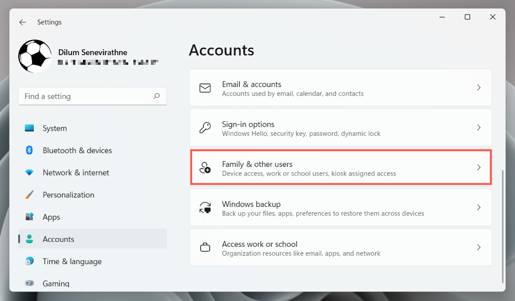- Select Family & other users.