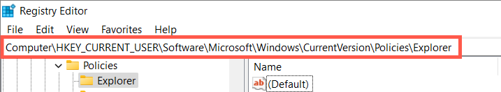 HKEY_CURRENT_USERSoftwareMicrosoftWindowsCurrentVersionPoliciesExplorer