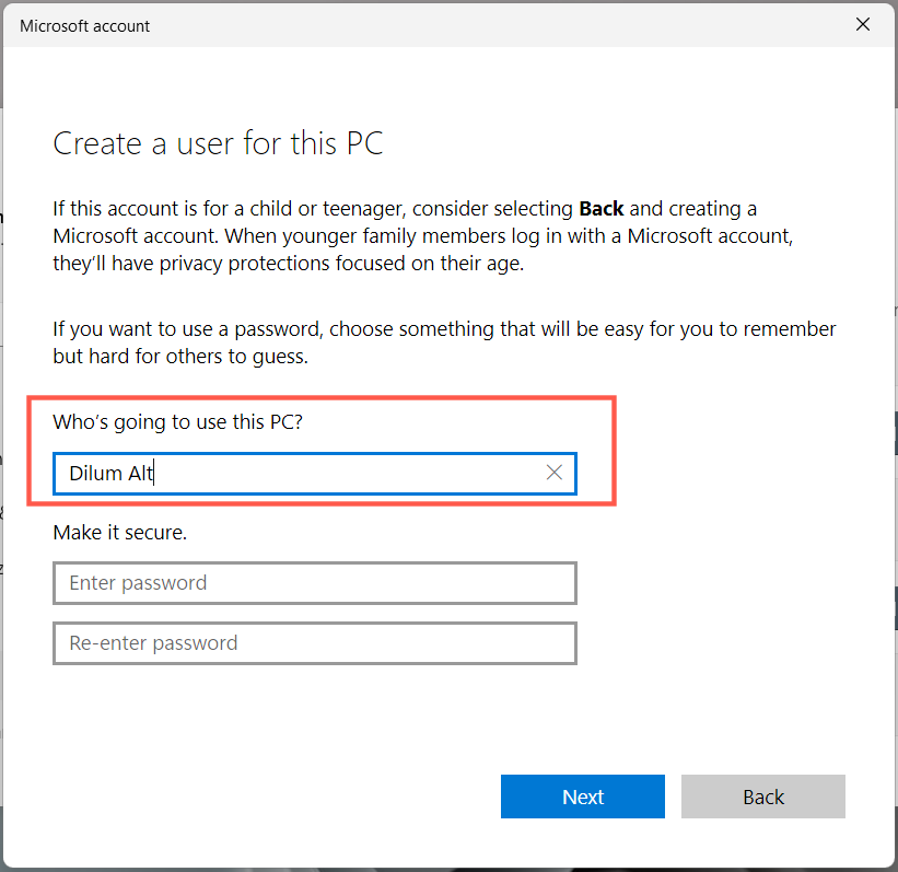 Create a New Windows Account
