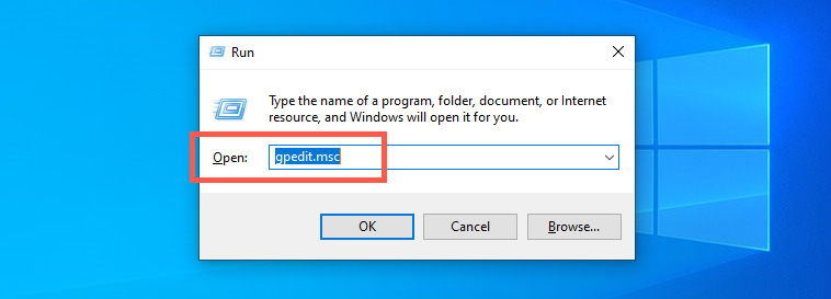 - Type gpedit.msc into the Open field and press Enter.