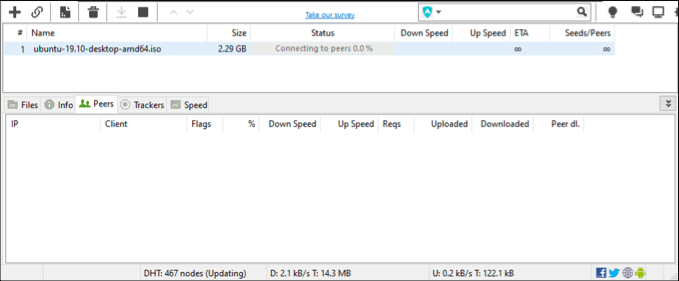 That means that uTorrent is stuck on “connecting to peers” until other users begin to seed the file you’ve chosen to download again. Your only option in this scenario is to try and find another, similar torrent file to the one you’re attempting to download.
