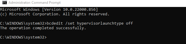 - Now enter the following command: bcdedit /set hypervisorlaunchtype off