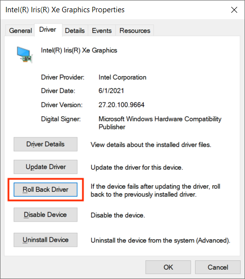 Driver updates can also introduce issues. If the Wdf01000.sys BSOD started showing up after a recent driver update, try rolling it back. With Device Manager open (press Windows + X and select Device Manager), expand the hardware category, right-click the driver, and choose Properties. Then, switch to the Driver tab and choose Roll Back Driver.