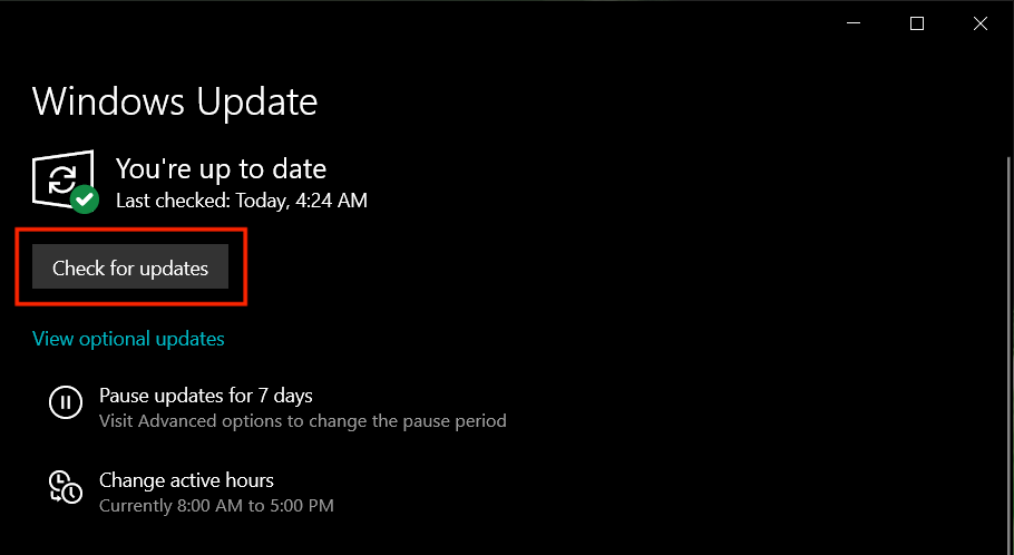 Installing the latest Windows 10 updates enhances the stability of the operating system. By default, Windows Update automatically downloads and applies newer versions. But you can always head over to Start > Settings > Windows Update and select Check for updates to search for and install them manually.