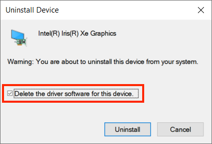 Additionally, you may want to watch out for corrupt device drivers. The Device Manager usually flags these with a yellow-colored exclamation mark. Try removing it if you see one of these (right-click and select Uninstall device). Make sure to check the box next to Delete the driver software for this device before confirming your action. Windows 10 will reinstall the driver the next time you reboot your computer.