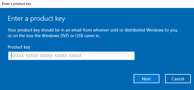 You may also see the error if you’re activating a PC that is not connected to the right network, especially if it’s a workplace device. If you’re on the right network, contact the IT administrator to help you change your network settings or try entering the product key again. To enter the product key: