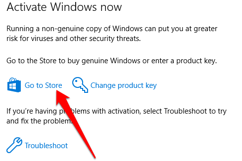 - If you don’t have a valid product key, select Go to Microsoft Store and buy the digital license for Windows.