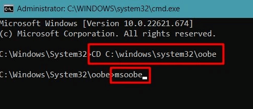 - Now type the msoobe command and hit Enter again. This will open the Microsoft out-of-the-box experience.