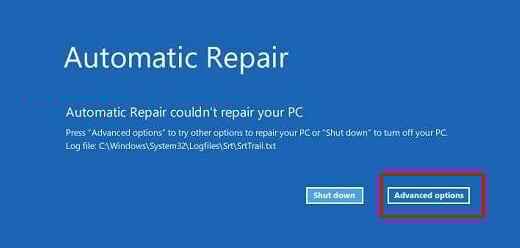 - Once in the Automatic Repair screen, select Advanced Options.